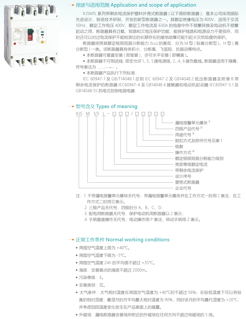 XJSM1L系列帶剩余電流保護塑料外殼式斷路器