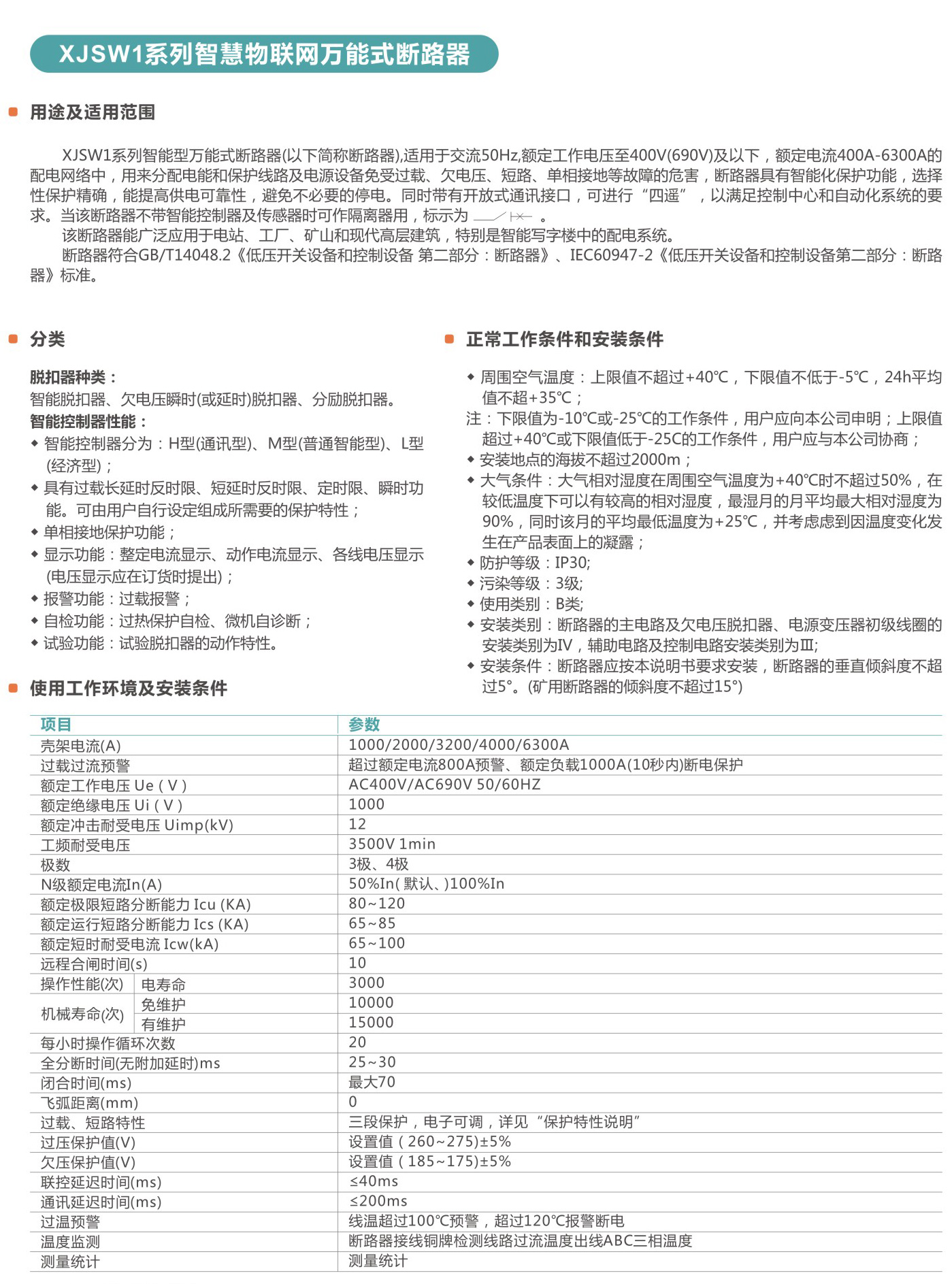 XJSW1系列智慧物聯(lián)網(wǎng)萬能式斷路器